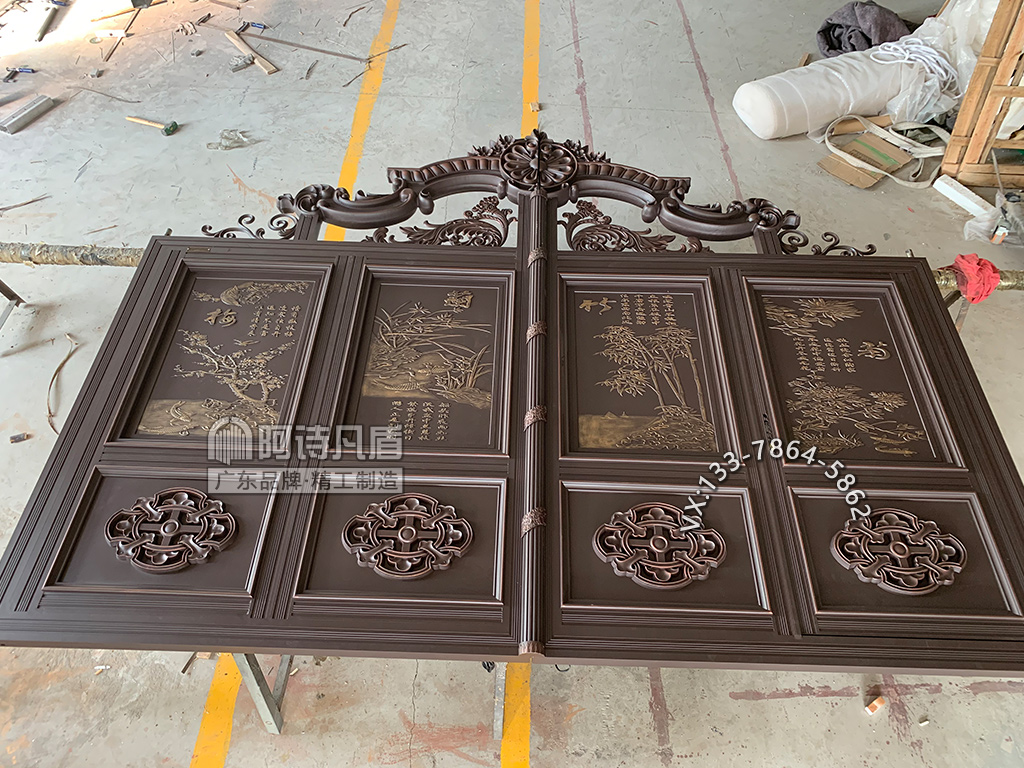 实芯铸铝门是用实木做框、然后两面用铸铝板粘合,门扇内部用保温、阻燃的材料进行填充,然后在进行更深的加工。