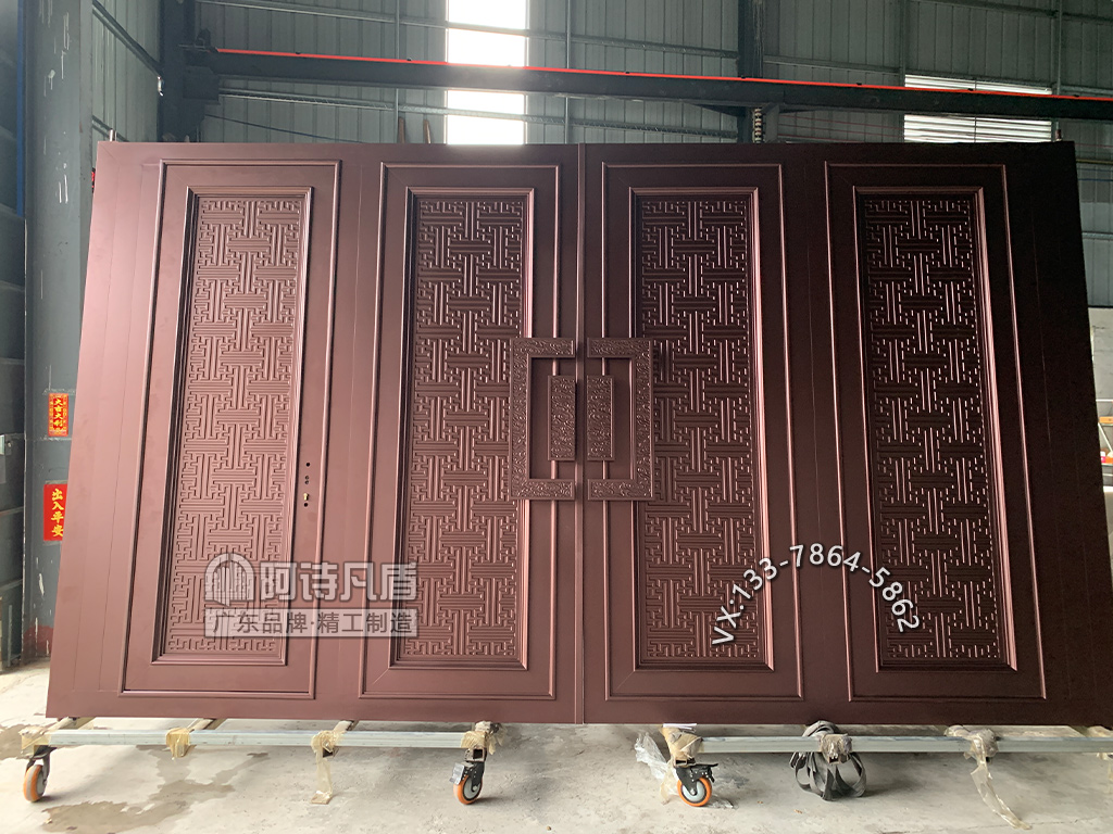别墅进户铸铝门真空铸铝板与传统的砂铸相比较,真空铸铝板具有表面纹路细腻、产品致密度高、机械强度高等优势,真空铸铝门板因此具有了传统门板所无法达到的防盗、防爆效果。背面实木门板的含水率低于12%,材料标准同其他木制品,质量好,厚度稳重,加工精细,光滑舒适,无毛刺。