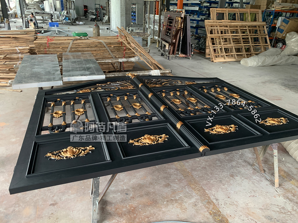 铝艺大门是由上至下,由左至右的进行细致的打磨,不会放过任何一个细节。精细的表面处理工艺先行表面清洗,把原材放置在磷化池(清洗原材的长方形水池,里面会放药水),清洗完之后,进行加工锻打,锻打完之后,成型的大门就会进行喷涂的操作,先涂一层底漆(底漆具有提高管材漆面的附着力和防腐蚀这样的性能),随后放到温度高达160度的烤箱中烤制,前后温度一致,均匀受热40分钟后,等待冷却;冷却完毕后,再涂一层色漆(色漆主要功能是着色,赋予大门绚丽的颜色,阻挡光线穿透),继续进行之前的步骤;后涂一层光漆(光漆可以增加亮度、增加漆膜厚度,提高油漆对大门的保护性能,不受外力的侵扰),然后继续高温烤制,高温冷却后,一扇造型华美、色彩亮丽的铝艺大门自此诞生。